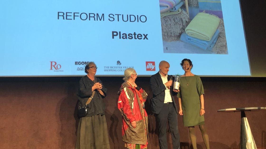 Reform Studio who tackled and won the challenge of re-using an often overlooked material like plastic bags.The Plastex fabric changes the meaning of the material and becomes a strong, durable, water resistant and sun, sand and dust-tolerant fabric, revitalizing the field of local Egyptian weaving and conveys an important message of ethical responsibility in a direct and concrete manner.